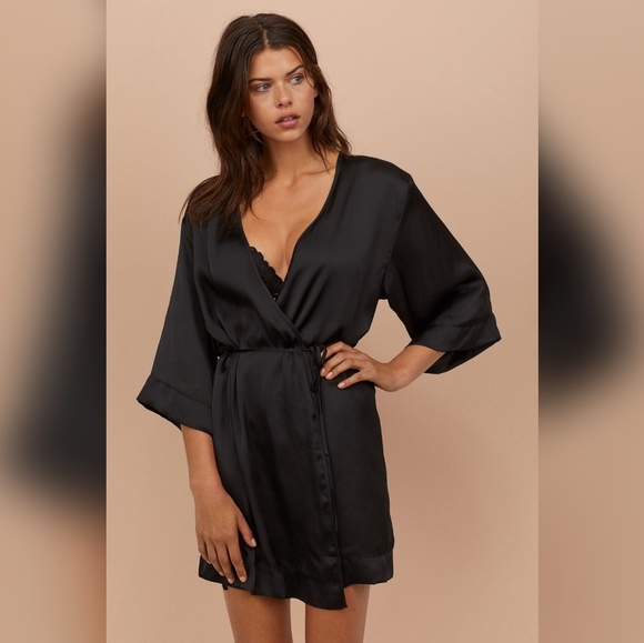 H m s 30 satin kimono with lace detailing is practically a steal. Make offer divided h m f2 womens long sleepwear robe open front long sleeve size xs s nwd h m night wear robe kimono pink black bird print novelty print cover up medium 12 74. Shop our edit of women s robes and hibernate in style in a satin dressing gown or a sheer chiffon kimono inspired robe from hunkemöller. Shop h m women s intimates sleepwear robes at up to 70 off.