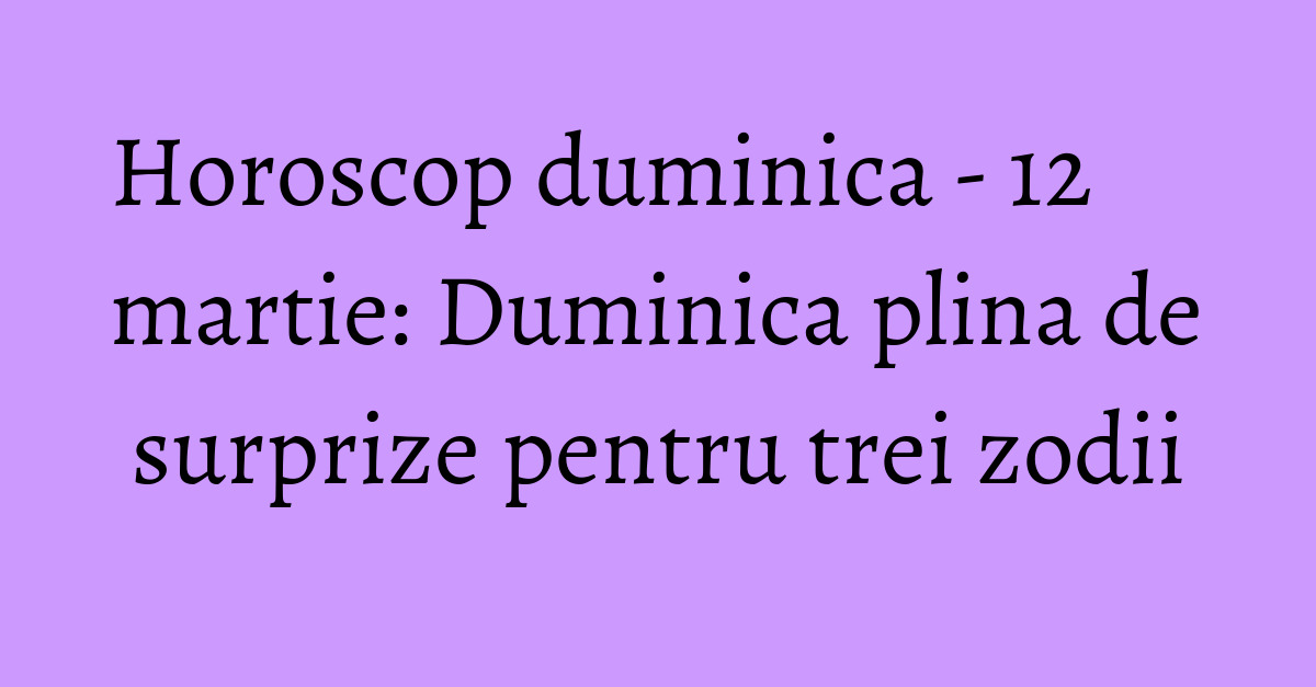 Iată ce au rezervat astrele fiecărei zodii pentru astăzi. Duminica 05 martie 2017 ora 12 39. Horoscopul zilei de 12 martie 2017. Va sfatuim sa amanati vizitele la prieteni sau la rude chiar daca partenerul de viata insista.