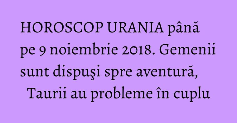 Veţi fi nevoiţi să vă întâlniţi sau chiar să colaboraţi cu o persoană pe care până acum aţi ocolit o pentru că nu e tocmai o companie plăcută. Horoscop dragoste noiembrie 2018. Horoscop urania ofera publicului o ampla analiza a contextului astral pentru saptamana 3 9 noiembrie 2018. Horoscop 9 noiembrie 2018.
