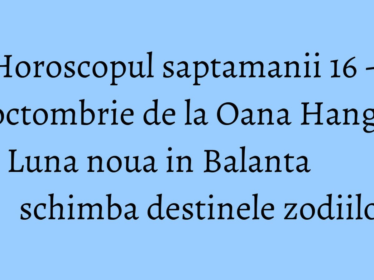 Horoscop oana hanganu saptamana viitoare. Iata ce schimbari importante au loc si ce oportunitati de exploatat se anunta. Săptămâna 12 18 octombrie 2020. Săptămâna 26 octombrie 1 noiembrie 2020. Mesajul arhanghelului mihail saptamana 26 octombrie 1 noiembrie 2020 afirmatia săptămânii 26 octombrie 1 noiembrie 2020 arhiva horoscop zilnic vineri weekend 23 25 10 2020.
