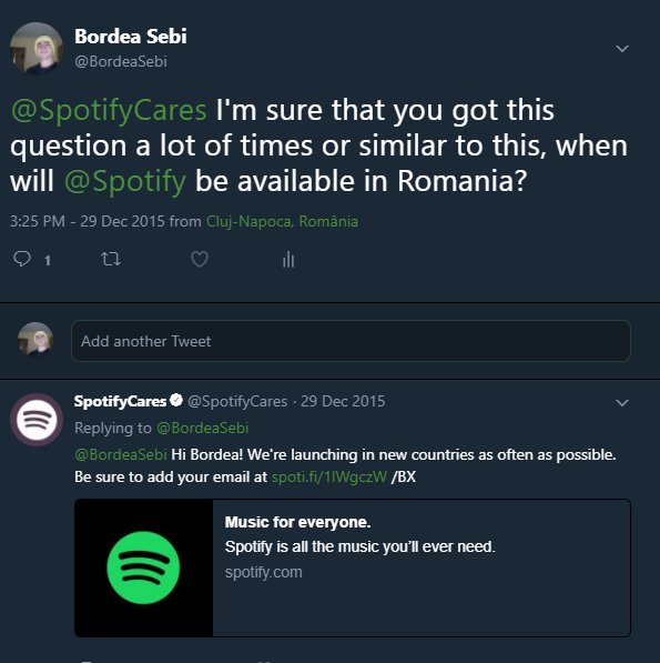 How to get spotify in romania. I would love to be able to use spotify without a vpn or other things. New comments cannot be posted and votes cannot be cast. Also i m interested in purchasing a subscription but only if spotify will officially be supported in romania. Want to discover new music.