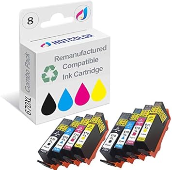 Amazon Com Hotcolor Compatible Ink Cartridges Replacement For Hp 670 Xl For Deskjet Ink Advantage 3525 4615 4620 4625 5525 6526 Printer 8pack Black Magenta Cyan Yellow Office Products