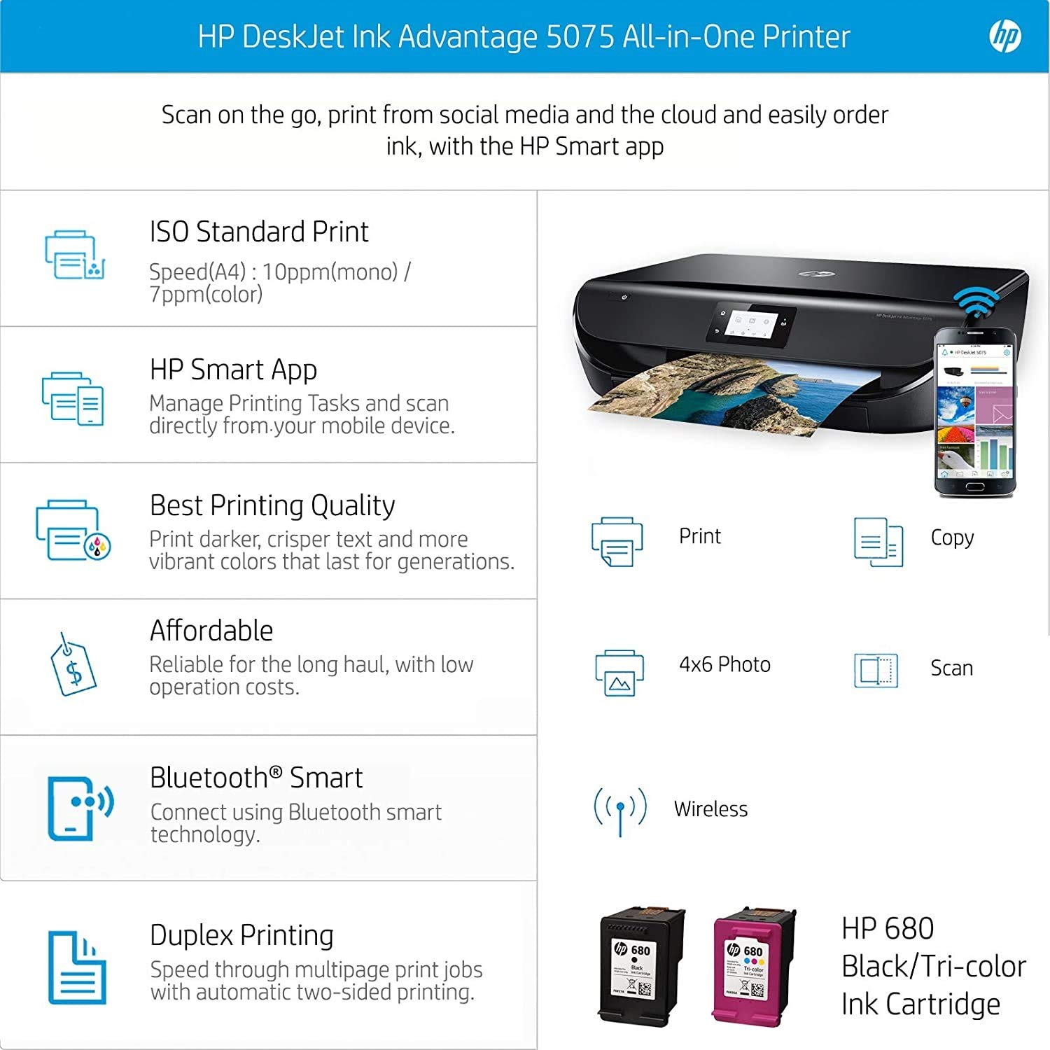 Hp Deskjet 5075 All In One Ink Advantage Wireless Colour Printer With Duplex Printing Hp 680 Ink Advantage Cartridge Black Amazon In Computers Accessories